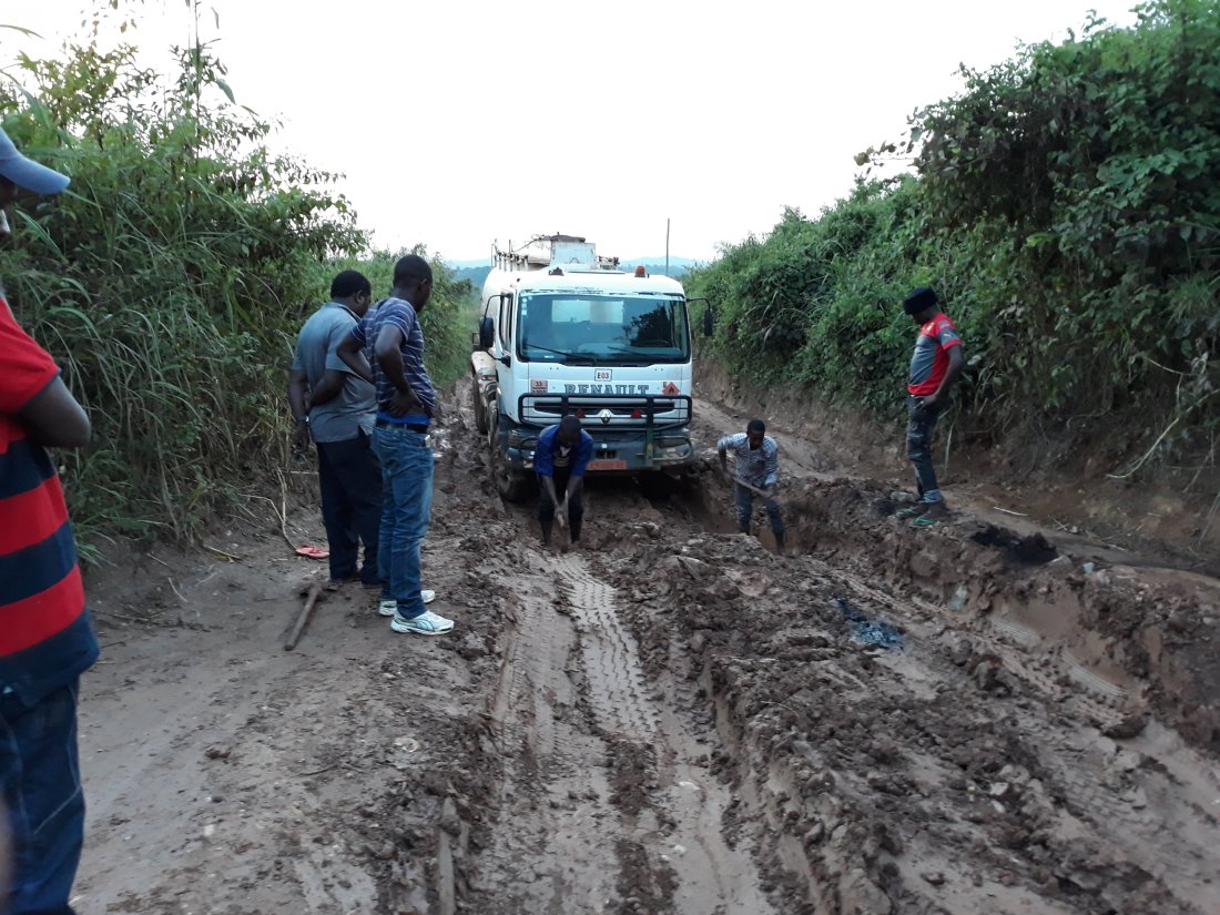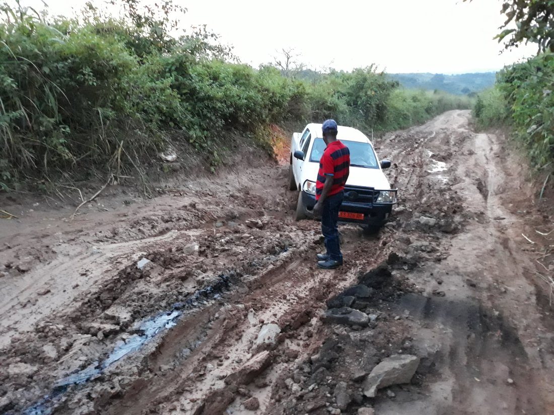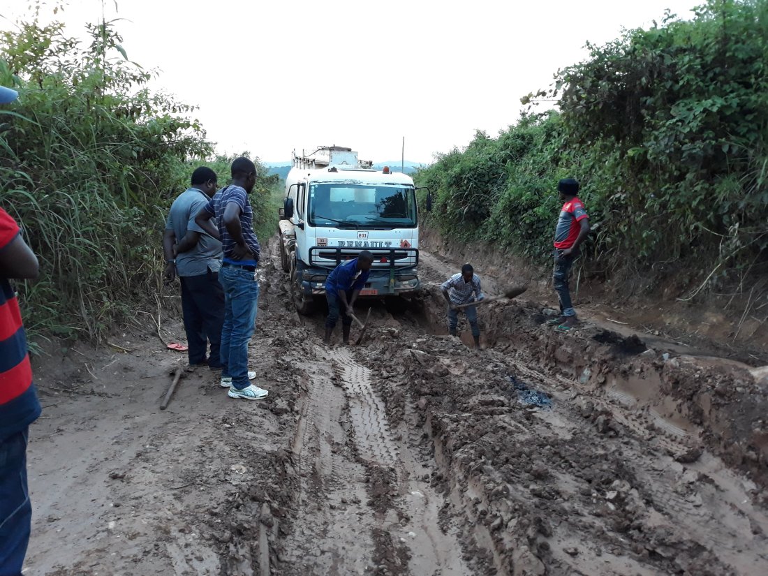 Hôm nay trời khô ráo nhưng mấy cái vũng nước này là từ mưa hôm qua. Nó khá phiền phức. Thậm chí có con xe gỗ phải nằm đó vì lún đường. Các nhà vận tải nghe đến Betare đều thở dài ngao ngán từ chối, mà nếu có chạy thì phải đòi giá cao.
