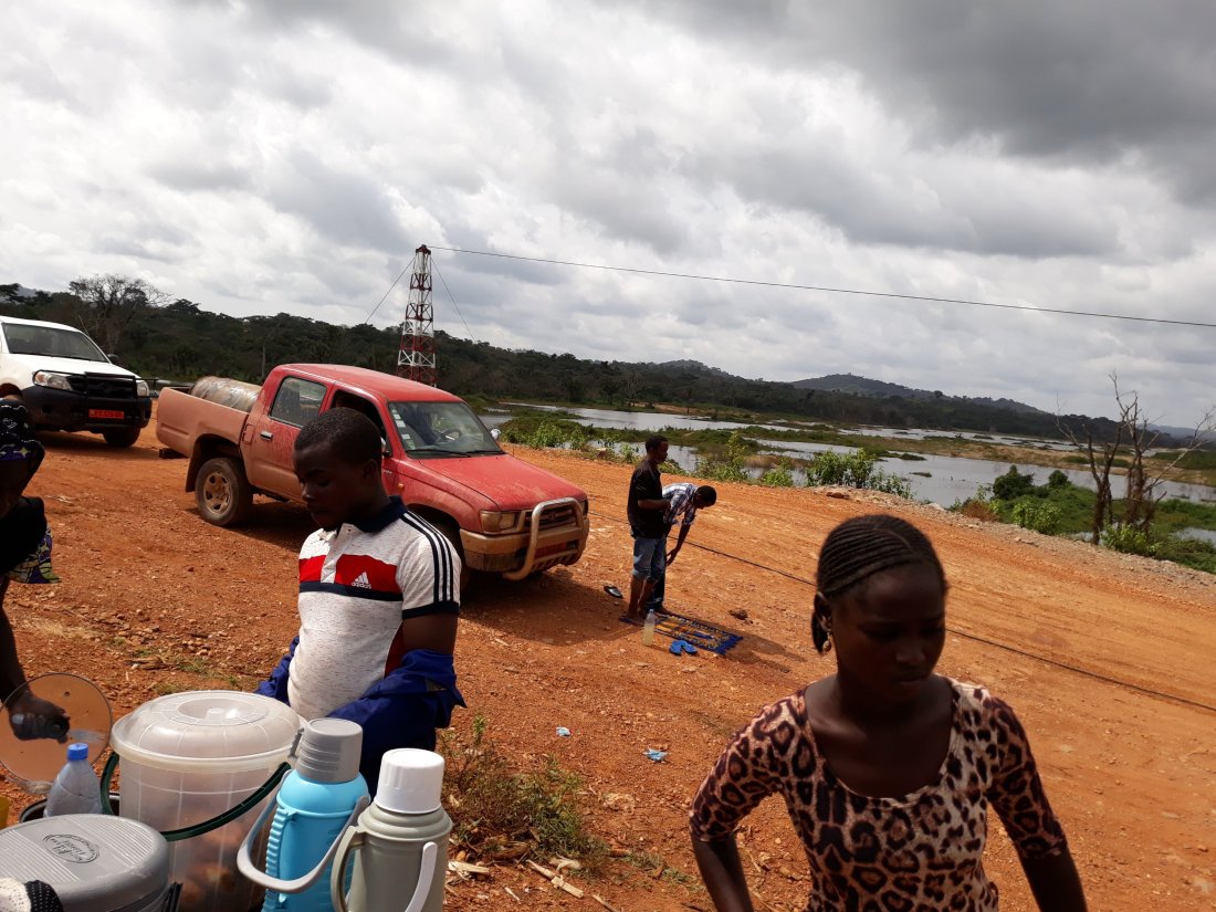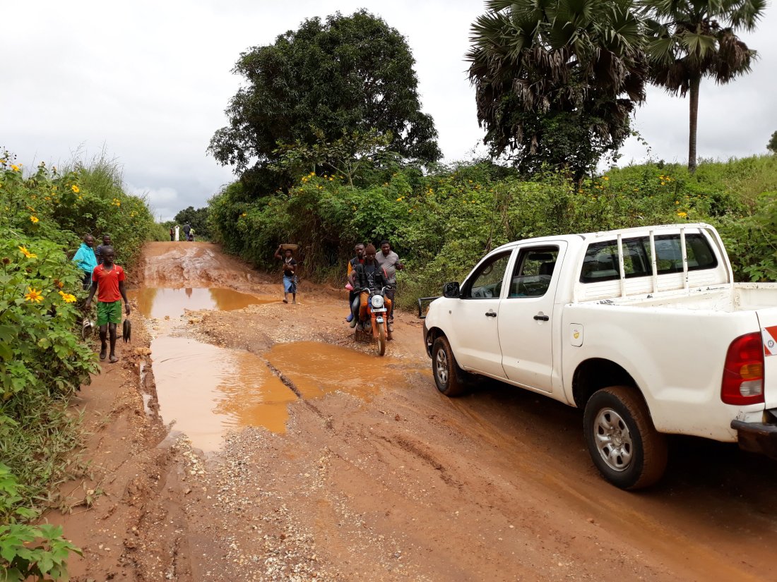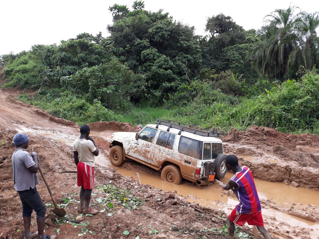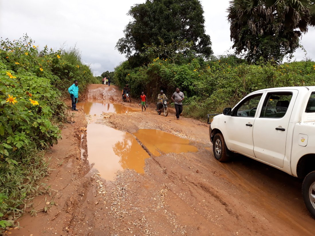 Hôm nay trời khô ráo nhưng mấy cái vũng nước này là từ mưa hôm qua. Nó khá phiền phức. Thậm chí có con xe gỗ phải nằm đó vì lún đường. Các nhà vận tải nghe đến Betare đều thở dài ngao ngán từ chối, mà nếu có chạy thì phải đòi giá cao.