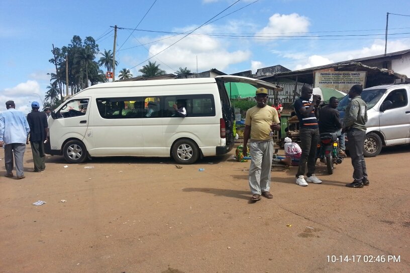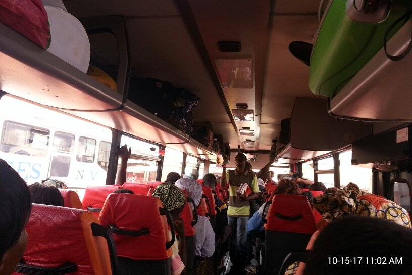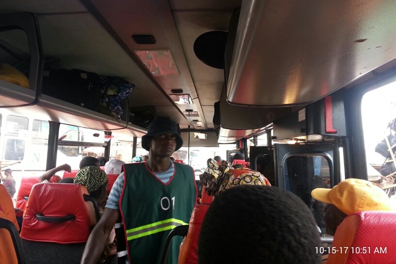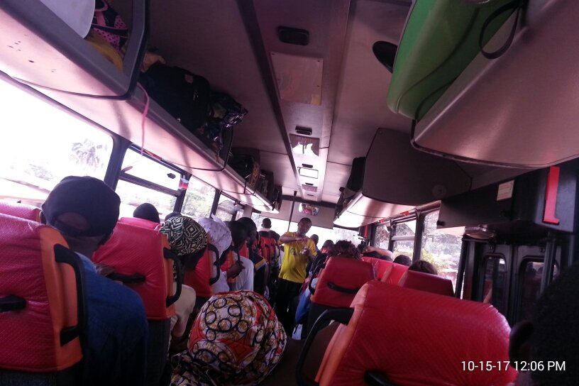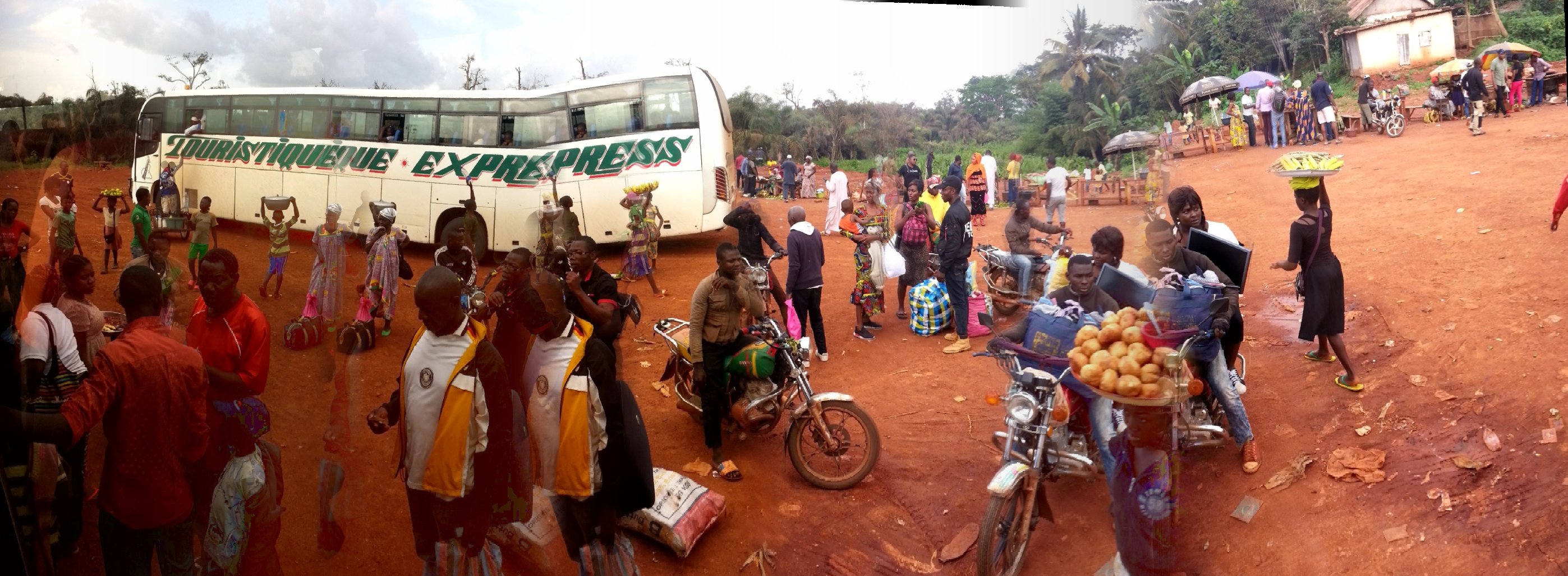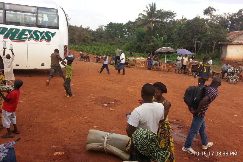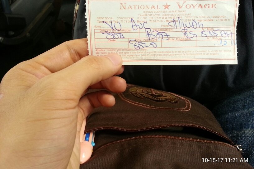 Đây là một xe khách từ Edea sẽ đi Yaunde. Cái cửa sau nó còn nền hành lý vào bồng hét cả lên. Ngồi thì rất chật và không hề thoải mái. Nhưng nhập gia thì tùy tục thôi.