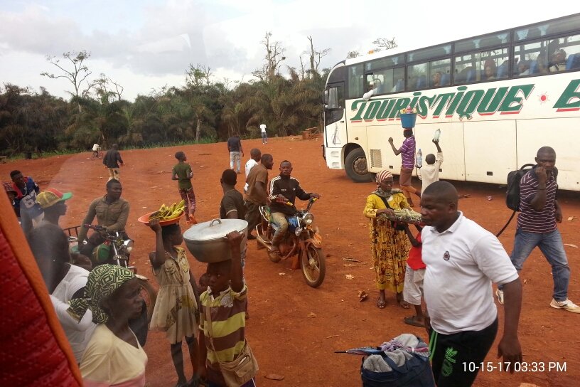 Cái bus là mình đi từ Yde lên Bertoua ở phía đông. Bertoua nó yên bình hơn, tất nhiên là thiếu thốn hơn. Nhưng rốt cuộc con người ta đâu cần gì nhiều hơn là có đồ ăn, uống nước sạch và một chỗ ngã lưng, phải không?